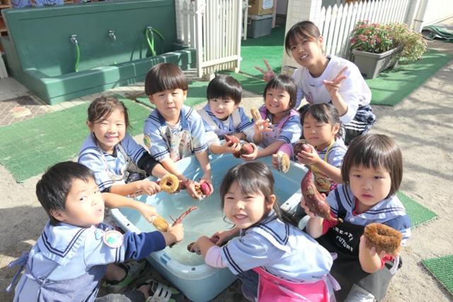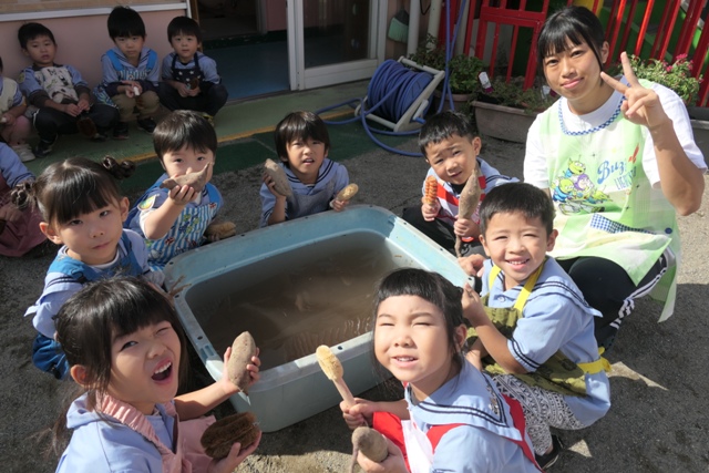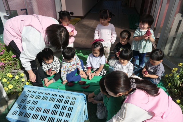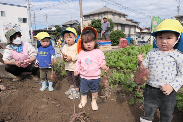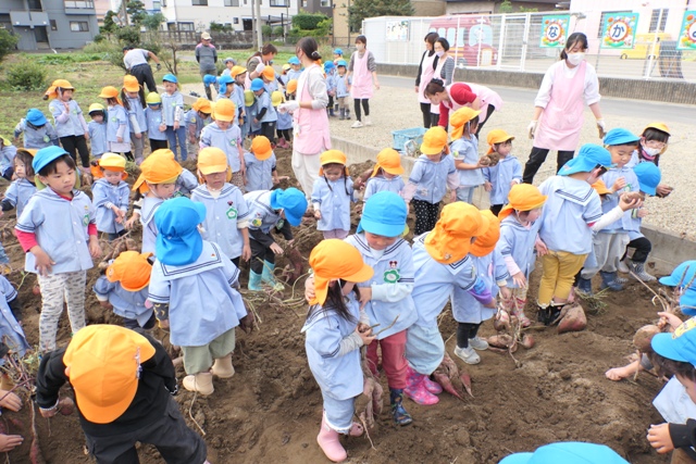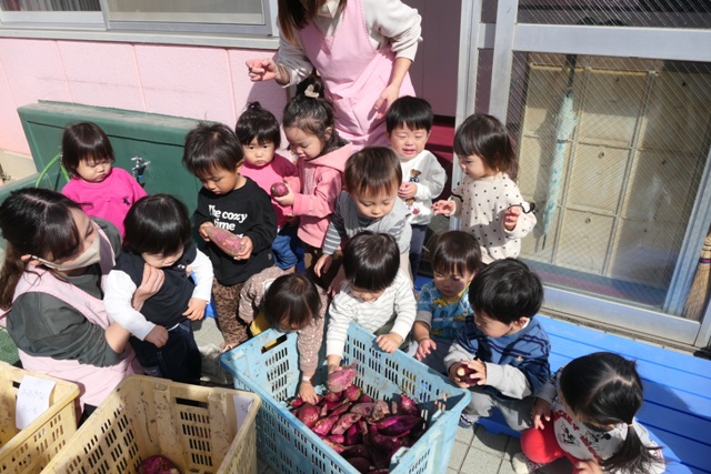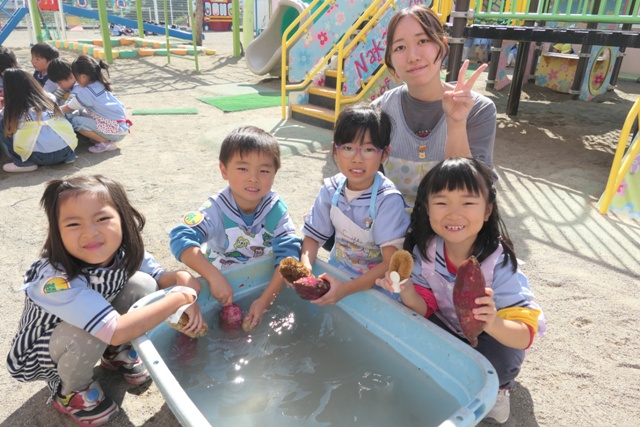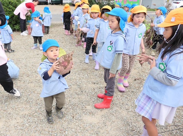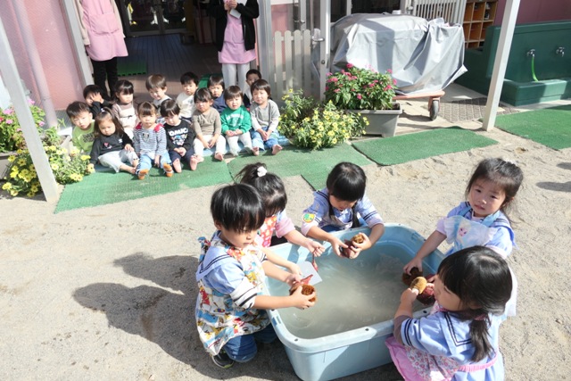 10がつのアルバム5(令和7年度)「未満児クラスいもほり・いも洗い」を更新しました。